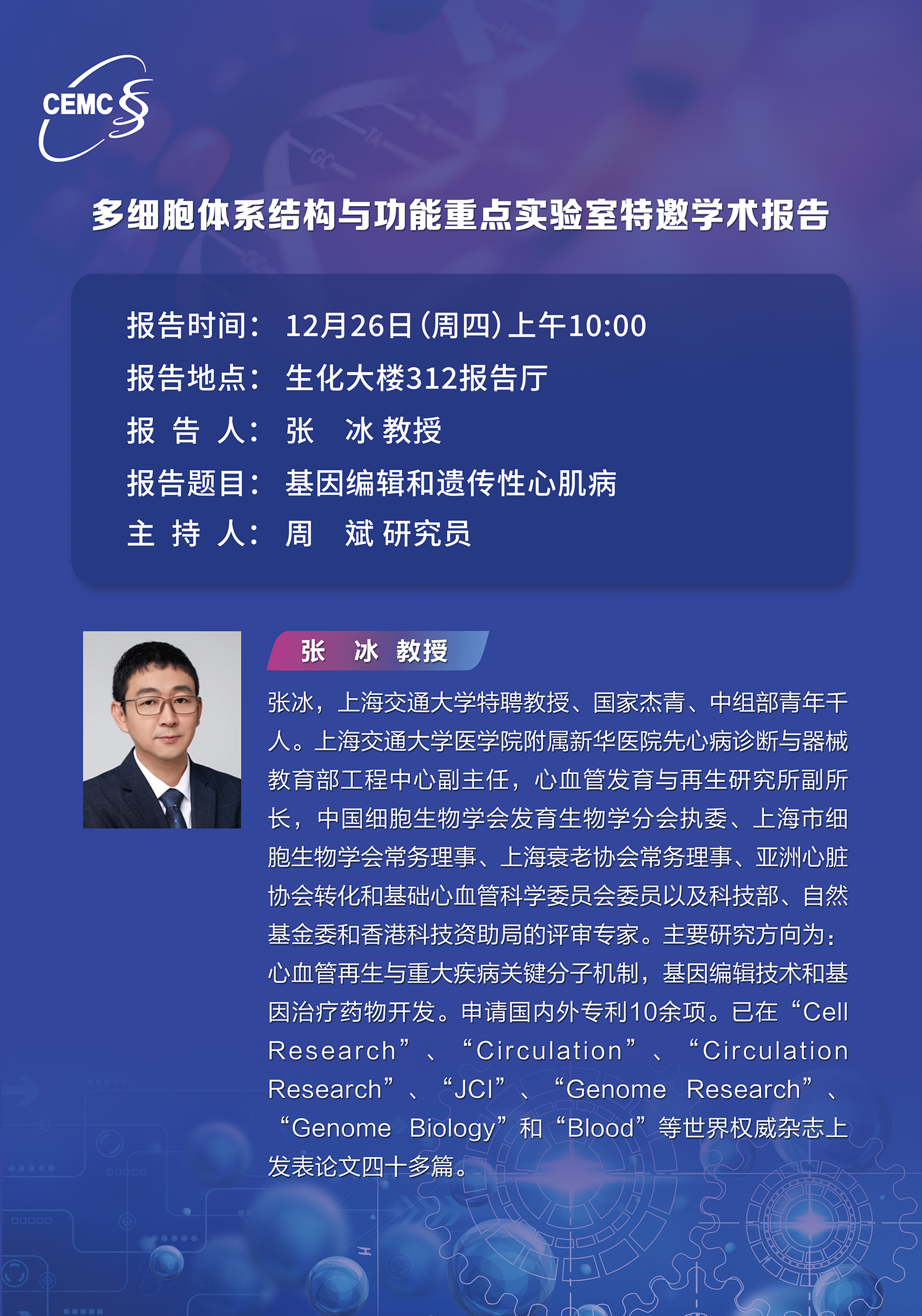 上海交通大學(xué)?張冰?教授:基因編輯和遺傳性心肌病