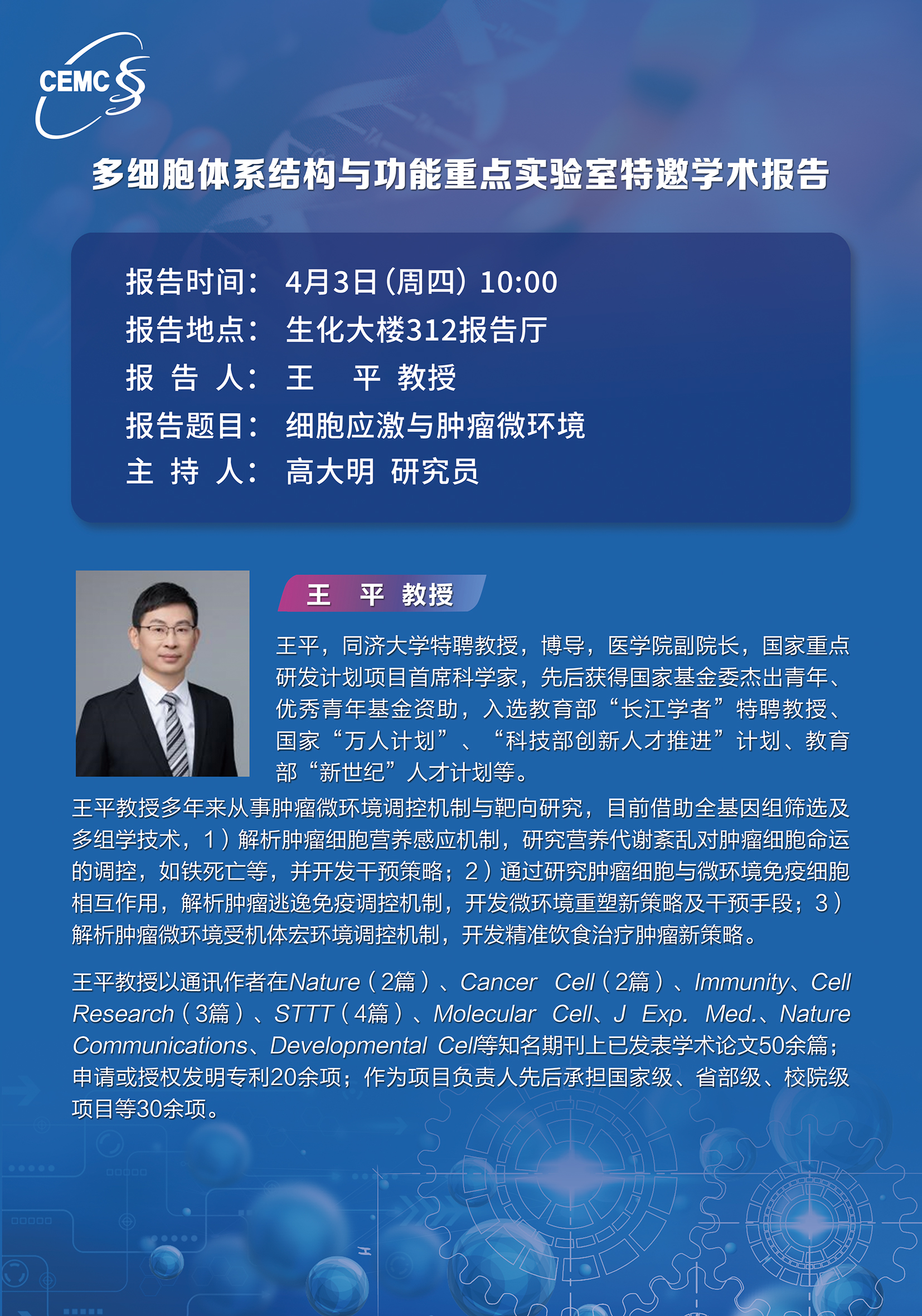 同濟(jì)大學(xué)?王平?教授:細(xì)胞應(yīng)激與腫瘤微環(huán)境