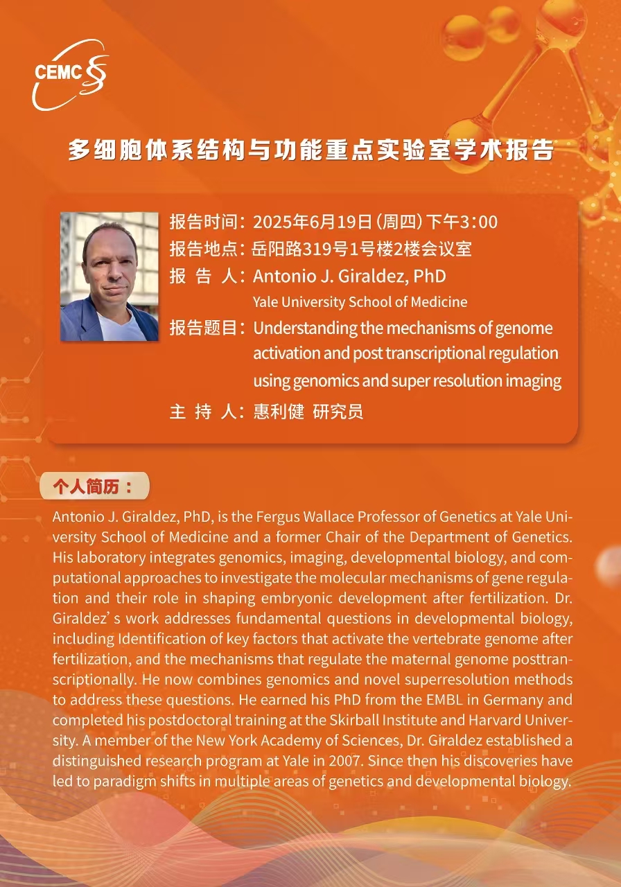 Prof.?Antonio J. Giraldez,?Yale University: Understandingthe mechanisms of genome?activation and post transcriptional regulation?using genomics and super resolution imaging