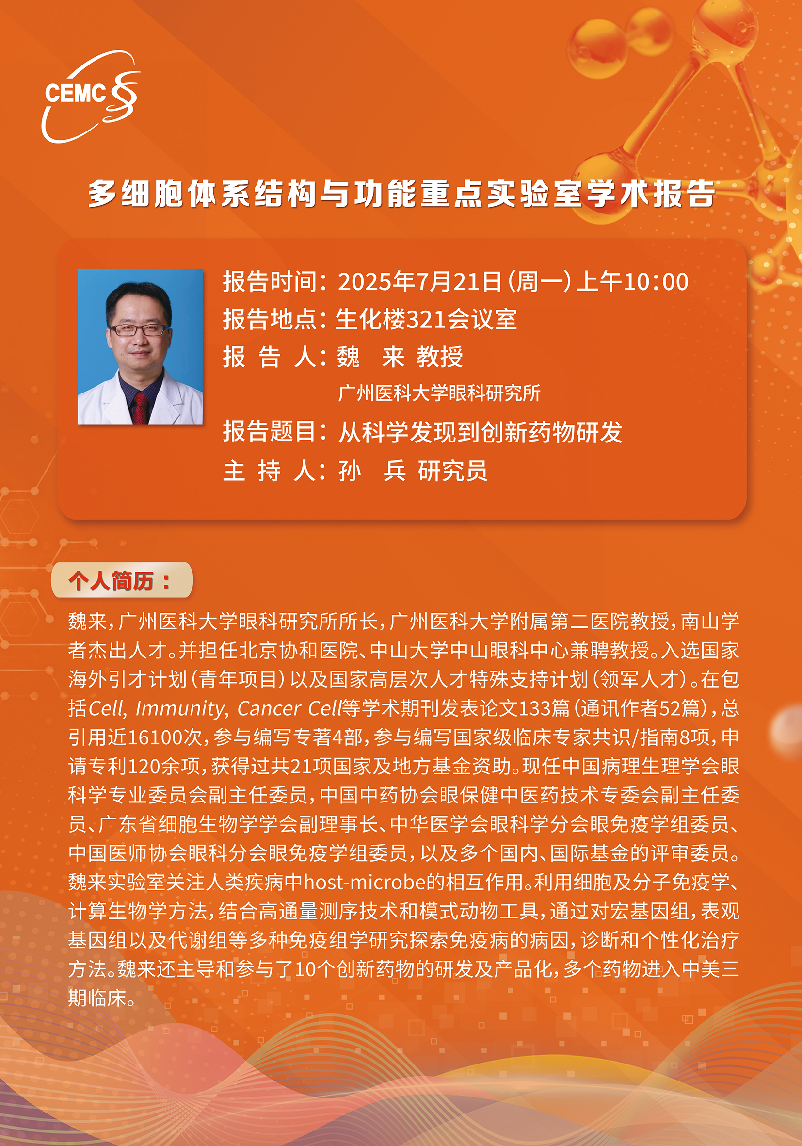 廣州醫(yī)科大學?魏來 教授:從科學發(fā)現(xiàn)到創(chuàng)新藥物研發(fā)