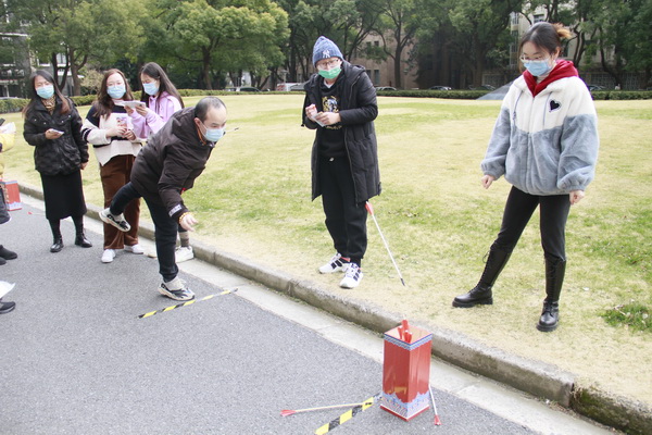 上午11時,活動現(xiàn)場人聲鼎沸,逛集市、品元宵、擲投壺、做兔燈好不熱鬧。“紅色驛站”集市區(qū)熙熙攘攘,商品琳瑯滿目,大家大包小裹排隊采買。投壺游戲區(qū)更是被圍了里三層外三層,人群中不時發(fā)出“哇”的喝彩聲和掌聲,經(jīng)過三輪投擲,丁建平組陳小寶、孫兵組徐解放、劉小龍組劉海峰和陳玲玲組姜博文、張君等五位老師同學(xué)從200余名參賽選手中脫穎而出,取得了10投7中以上的好成績,獲得 “飛天兔”獎。兌獎區(qū)也在1個多小時內(nèi)兌出了360件包括手擲模型飛機、手工兔子燈、跳繩、雞毛毽子等在內(nèi)的參與獎,有的獲獎?wù)哌€當場組裝好模型飛機玩耍起來,實驗樓前的大草坪也成了快樂的海洋。