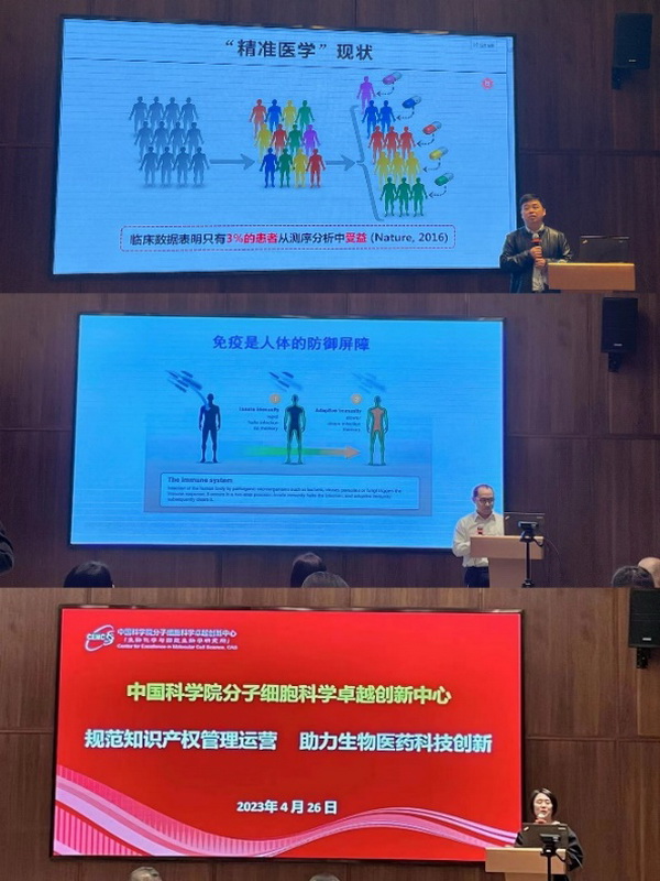 殷夢昕作題為“規(guī)范知識產(chǎn)權(quán)管理運營,助力生物醫(yī)藥科技創(chuàng)新”的主題演講,介紹了中心發(fā)展改革歷程,細(xì)數(shù)了中心在創(chuàng)造知識、應(yīng)用知識、傳播知識等方面所取得的成績,并詳細(xì)介紹了中心知識產(chǎn)權(quán)管理及成果轉(zhuǎn)移轉(zhuǎn)化工作的布局與進展。高棟研究員分享了“類器官技術(shù)的開發(fā)與應(yīng)用”,以前列腺癌為實例從類器官構(gòu)建的機理機制研究到技術(shù)在腫瘤分型治療中應(yīng)用前景進行了深入淺出地系統(tǒng)講解。侯法建研究員分享了“抗病毒天然免疫的分子機制和轉(zhuǎn)化研究”,從天然免疫研究大事紀(jì)為起始,詳細(xì)地介紹了天然免疫領(lǐng)域前沿研究進展,并分享了具有抗病毒潛力的小分子機制和轉(zhuǎn)化研究。