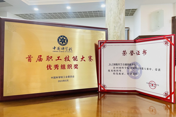 5月24日,中國科學院首屆職工技能大賽頒獎儀式在2023年基層工會主席培訓班暨工會工作創(chuàng)新獎評選會上舉行,中國科學院黨組成員、副秘書長李和風為分子細胞科學卓越創(chuàng)新中心頒發(fā)優(yōu)秀組織獎。該獎項為首次設立,旨在表彰積極開展本單位技能競賽并在院級比賽中有突出表現(xiàn)的單位,全院共15家單位獲此殊榮。