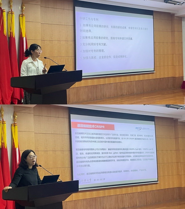曹麗榮深入淺出地分享了知識產(chǎn)權(quán)在科研創(chuàng)新全過程中的作用及重要性,并詳細講解了在科研工作中如何通過專利布局保護和運用創(chuàng)新成果。蔣莉從全球各國倫理規(guī)范再到法律框架,系統(tǒng)地梳理了基因編輯技術(shù)應(yīng)用中的各類問題,并就我國基因編輯技術(shù)的安全評價、技術(shù)進出口、專利審查等相關(guān)法律法規(guī)進行了細致地講解。