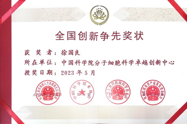 5月30日,在第七個全國科技工作者日到來之際,第三屆全國創(chuàng)新爭先獎在京頒發(fā)。分子細(xì)胞科學(xué)卓越創(chuàng)新中心徐國良院士和陳玲玲研究員被授予第三屆全國創(chuàng)新爭先獎狀。