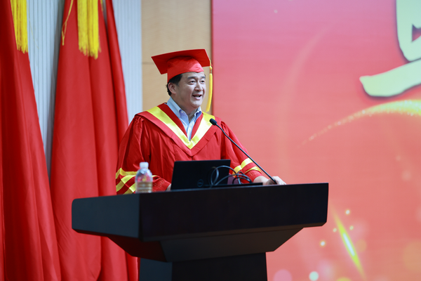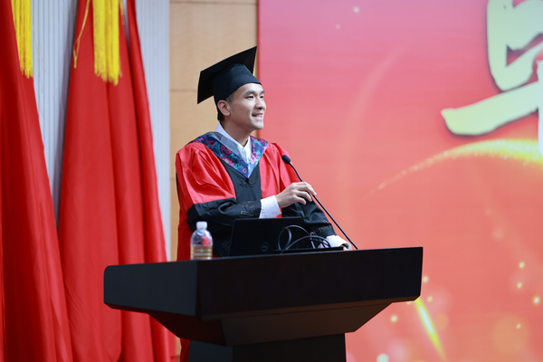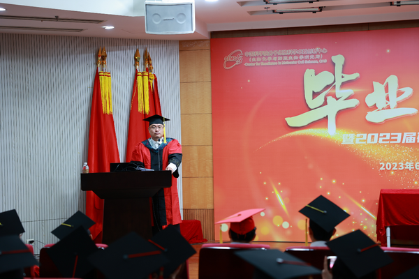 畢業(yè)典禮在莊嚴(yán)的國歌聲中拉開帷幕。劉小龍代表中心全體師生員工向圓滿完成學(xué)業(yè)、順利畢業(yè)的全體博士研究生、碩士研究生致以最熱烈的祝賀!他指出,同學(xué)們將是實(shí)現(xiàn)中華民族偉大復(fù)興的寶貴人才和中堅(jiān)力量,并從胸懷家國,志存高遠(yuǎn);腳踏實(shí)地,不懈奮斗;繼往開來,砥礪前行等三個方面向全體畢業(yè)生提出期望,殷切希望同學(xué)們在未來的道路上,要時刻牢記“心系國家事,肩扛國家責(zé)”的使命,充分利用自己所學(xué)的知識服務(wù)國家和人民之所需,大力傳承弘揚(yáng)科學(xué)家精神,永遠(yuǎn)記得“獻(xiàn)身、求實(shí)、團(tuán)結(jié)、奮進(jìn)”的所訓(xùn),踔厲奮發(fā),勇毅前行,在各自的領(lǐng)域內(nèi)閃閃發(fā)光,熠熠生輝,在強(qiáng)國建設(shè)民族復(fù)興新征程上唱響青春之歌!
