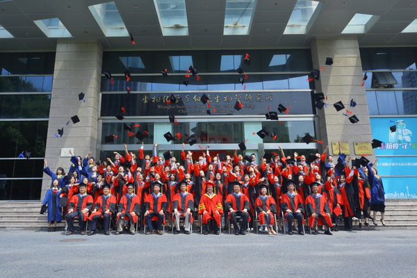 畢業(yè)典禮結(jié)束后,全體畢業(yè)生在新生化大樓前合影留念。