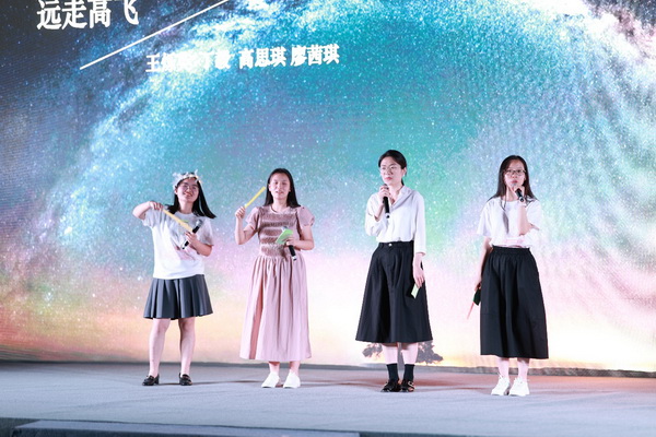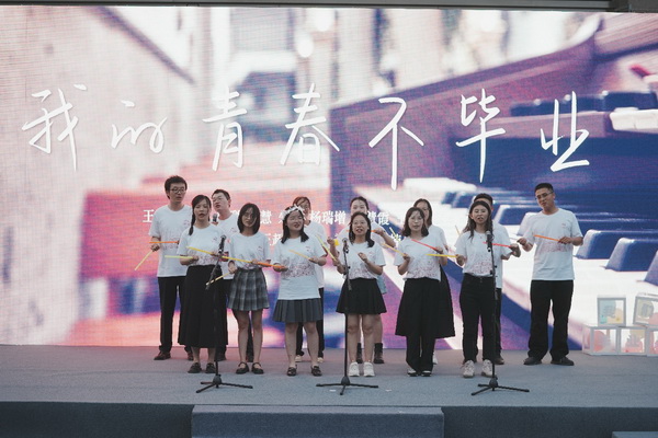 《陳奕迅歌曲串燒》《一路生花》等節(jié)目讓現(xiàn)場氣氛不斷推進(jìn),唱到歌曲的高潮也能聽到觀眾與演員歌聲相和,臺上、臺下一片其樂融融。帶著對學(xué)生時(shí)代的不舍和對未來生活的希望,畢業(yè)生為大家?guī)砗铣段业那啻翰划厴I(yè)》,送給自己,也送給培養(yǎng)自己的老師們。