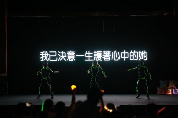 剛勁與柔美并存的雙截棍表演,輕快詼諧的歌曲《別找我麻煩》引得大家掌聲陣陣。許琛琦、李典范、張少慶等三位導(dǎo)師的合唱歌曲《一言難盡》將音樂會推向了一個(gè)小高潮,同學(xué)們聽得意猶未盡,在大家的熱情“呼喚”下,許琛琦、李典范、張文娟三位老師又化身為"返場"嘉賓,即興演唱,引起大家陣陣喝彩。戲曲《神女劈觀》曲調(diào)高亢,《熒光舞》活潑歡快,讓人耳目一新。