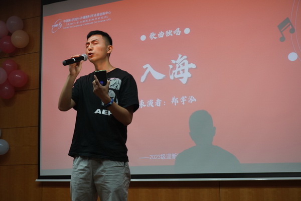 步入研究生階段,翻開人生的嶄新篇章,找尋成長與夢想的答案。鄭宇泓同學(xué)以一首溫暖人心的《入?!防_了晚會的帷幕。中心學(xué)子正是以汗水與拼搏筑成不凡的成長之路,如歌曲所唱:“躍入人海成為一朵奔涌璀璨的浪花”。晚會現(xiàn)場同學(xué)們一起揮動雙手,輕聲合唱,將氣氛推向第一個高潮。