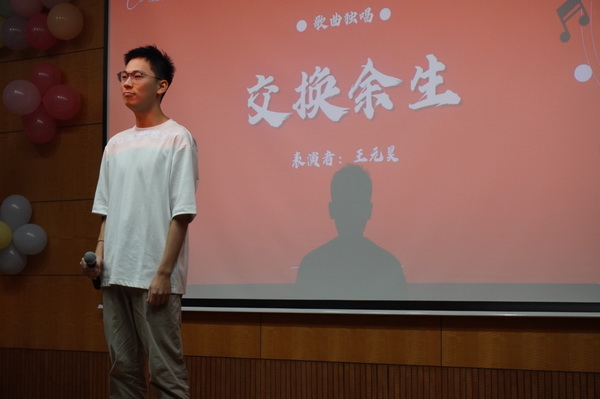 青春恣意,歌聲飛揚,一首首動人的歌曲贏得了現(xiàn)場觀眾熱烈的掌聲。李錦鴻同學(xué)的《單車》唱出了成長道路上父母無言的陪伴與關(guān)愛;劉耀銘同學(xué)用一首《苦瓜》訴說了自己的成長體會,同時勉勵各位同學(xué)在科研追夢的道路上不怕苦不怕難,用奮斗迎接成功的甜蜜;王元昊同學(xué)更是以溫柔動聽的《交換余生》講述了一個溫馨感人的故事,獲得同學(xué)們陣陣歡呼。