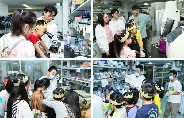 為了讓公眾更直觀地感受科學的魅力,壽星們按年齡分成不同組別前往實驗室參觀學習。大家依次體驗四個不同難度的科學實驗,通過顯微鏡觀察口腔上皮細胞形態(tài)和結構、細胞和組織中特定蛋白成分的分布,與實驗小鼠“親密接觸”,參與魔法變色實驗感受化學反應的神奇,在科學探究中加深對科學原理和方法的理解。