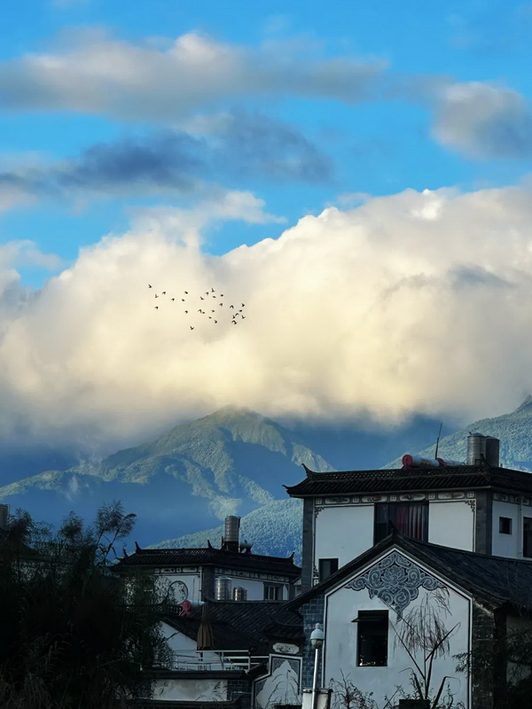 國慶在大理早起想要看日出,沒想到云層太厚擋住了太陽,有點小失落走回去的時候卻發(fā)現(xiàn)了更美妙的風(fēng)景,遠(yuǎn)處的山峰云層與近處的房子相得益彰,一群大雁突然闖進(jìn)鏡頭更添驚喜!