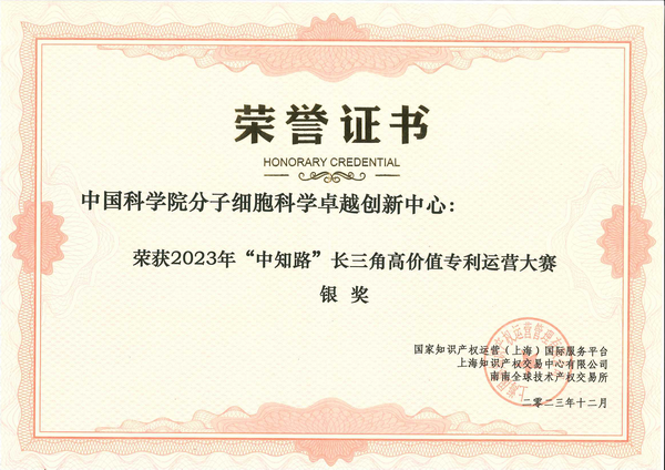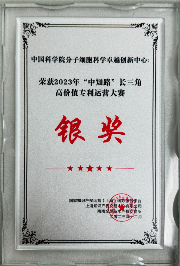 會上,舉辦了2023年“中知路”長三角高價值專利運(yùn)營大賽的頒獎儀式,分子細(xì)胞卓越中心項(xiàng)目“利用腸道細(xì)菌檢測早期肺癌”經(jīng)過層層選拔,最終以優(yōu)異的成績榮獲本次高價值專利運(yùn)營大賽銀獎。