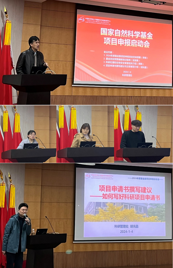 為全面貫徹黨的二十大精神,深入落實(shí)習(xí)近平總書記關(guān)于加強(qiáng)基礎(chǔ)研究工作系列指示精神,堅(jiān)持“四個(gè)面向”和“兩條腿走路”的戰(zhàn)略導(dǎo)向,做好國(guó)家自然科學(xué)基金項(xiàng)目組織申報(bào)工作,分子細(xì)胞卓越中心于1月4日組織召開(kāi)2024年度國(guó)家自然科學(xué)基金項(xiàng)目申報(bào)啟動(dòng)會(huì)。中心研究組長(zhǎng)、副研究員、博士后及研究組秘書等60余人參會(huì)。會(huì)議由科研管理處處長(zhǎng)胡光晶主持。