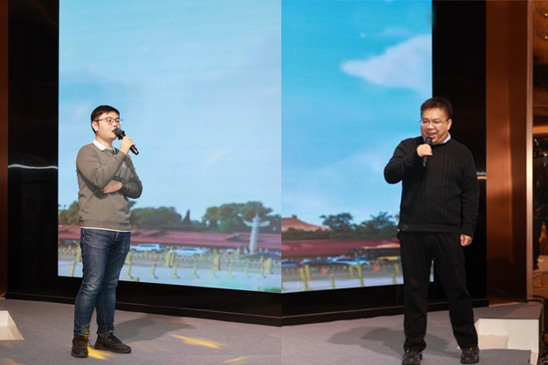 活動開場,一首由全體師生員工共同完成的《明天會更好》點(diǎn)燃了會場的熱情,院士先生、中心領(lǐng)導(dǎo)班子成員通過視頻方式送上了最美好的新年祝愿。中心主任、黨委負(fù)責(zé)人劉小龍發(fā)表新年致辭,他概要回顧了中心2023年取得的成績,向全體師生員工的辛勤付出表示感謝,并祝愿大家龍年龍行大運(yùn)、龍騰萬里!。