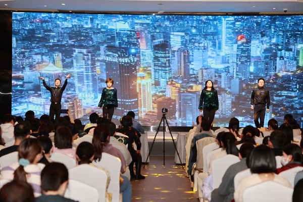 本次聯(lián)歡會由高浩然、李榮耀、甘坤和吳姝棁聯(lián)袂主持,他們談吐曉暢、臺風(fēng)穩(wěn)健,頗具風(fēng)范。退休職工代表表演了熱情奔放的舞蹈《西班牙隨想》,展示了老同志們多姿多彩的退休生活與昂揚(yáng)向上的精神風(fēng)貌。行政部門代表以《我相信》舞臺劇展現(xiàn)了重點(diǎn)實(shí)驗(yàn)室籌建和實(shí)驗(yàn)空間拓展的艱辛歷程,“開局就是決戰(zhàn),起步就是沖刺”喊出了全力以赴搶占科技制高點(diǎn)、開創(chuàng)發(fā)展新局面的信心與勇氣。在所務(wù)委員許琛琦的隆重介紹下,近三年引進(jìn)的9位新PI集體亮相。趙祥和張少慶傾情獻(xiàn)唱《我和我的祖國》,代海強(qiáng)、王露、吳薇和韓碩攜子女表演了活力十足的舞蹈《98K》,他們激情澎湃、斗志昂揚(yáng),相信他們將在中心的“沃土”上創(chuàng)造出更多原創(chuàng)性科技成果。貢葉清、王元昊聯(lián)唱《白馬入蘆花》《想見你想見你想見你》《手心的薔薇》三首歌曲,美妙的歌聲讓大家沉醉。東方舞《一千零一夜》揭開了異域的神秘面紗,張曉潔高超的肚皮舞技巧讓觀眾們掌聲連連。王行睿的吉他演奏《瑪麗亞·路易斯》從科研人員業(yè)余生活的一角展示出大家對生活的熱情。中心合唱團(tuán)用歌聲娓娓道來,帶來一場視覺與聽覺的盛宴,《向云端》《聲聲慢》悠揚(yáng)婉轉(zhuǎn),層層遞進(jìn),四聲部配合默契,表達(dá)出科研人員努力釋放生命的潛能和熱情,為追求夢想而堅持不懈的品質(zhì)。小提琴伴奏的《燈火里的中國》振奮激昂,表達(dá)了對新年的美好期待。愛爾蘭舞《Rhythm of Irland》節(jié)奏明快強(qiáng)烈,踏出新年最強(qiáng)音。惠利健組師生的歌曲串燒活力滿滿,帶動了現(xiàn)場觀眾的參與,將聯(lián)歡會氣氛推向新高潮。研究生會代表的小合唱《祝福》《相親相愛》表達(dá)了研究生們對新一年踔厲奮發(fā)啟新程,篤行不怠向未來的美好愿望。