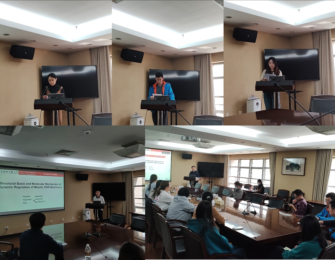 研學(xué)大討論后,支部舉行了第一期“學(xué)術(shù)沙龍”活動(dòng),由陳勇研究組李家廣同學(xué)做報(bào)告分享。李家廣以“減數(shù)分裂DSB機(jī)器動(dòng)態(tài)調(diào)控的結(jié)構(gòu)基礎(chǔ)和分子機(jī)制”為主題,介紹了結(jié)構(gòu)生物學(xué)、生物化學(xué)等方法在解決DSB機(jī)器的位點(diǎn)選擇和精細(xì)組裝過(guò)程中的應(yīng)用。接下來(lái)支部將通過(guò)“一月一期”的學(xué)術(shù)沙龍活動(dòng),加強(qiáng)黨建工作與科技創(chuàng)新的融合促進(jìn),充分發(fā)揮黨支部的戰(zhàn)斗堡壘作用,搭建探討科研問(wèn)題的舞臺(tái),加強(qiáng)支部成員間學(xué)術(shù)交流,碰撞思維火花,為建設(shè)科技強(qiáng)國(guó),實(shí)現(xiàn)高水平科技自立自強(qiáng)增磚添瓦。