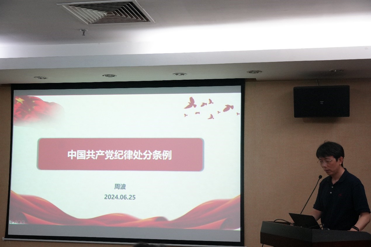 支部書記周波進(jìn)行總結(jié)發(fā)言,希望各位黨員真正將“講紀(jì)律、促攻堅(jiān)”融合到科研實(shí)際行動中,將黨紀(jì)教育學(xué)習(xí)成果轉(zhuǎn)化為加快搶占科技制高點(diǎn)的實(shí)際成效。