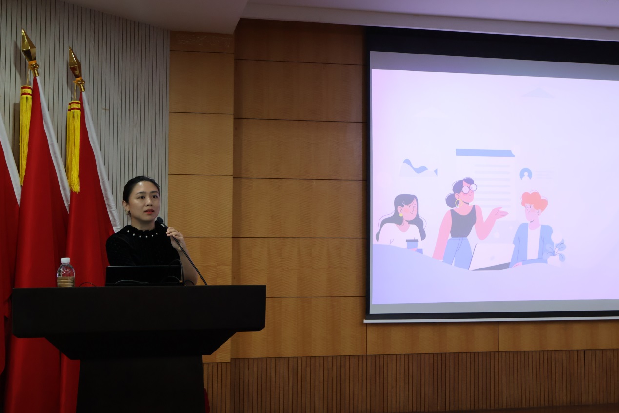 殷夢昕介紹了知識產(chǎn)權(quán)的定義和其在科研中的保護作用,并通過案例分析為同學們生動解讀知識產(chǎn)權(quán)的重要性。她還詳細地向同學們展示了課題進行中的知識產(chǎn)權(quán)管理相關(guān)要求,提示新生要充分利用文獻專利信息,注重日常研究保密,及時進行知識產(chǎn)權(quán)保護等。