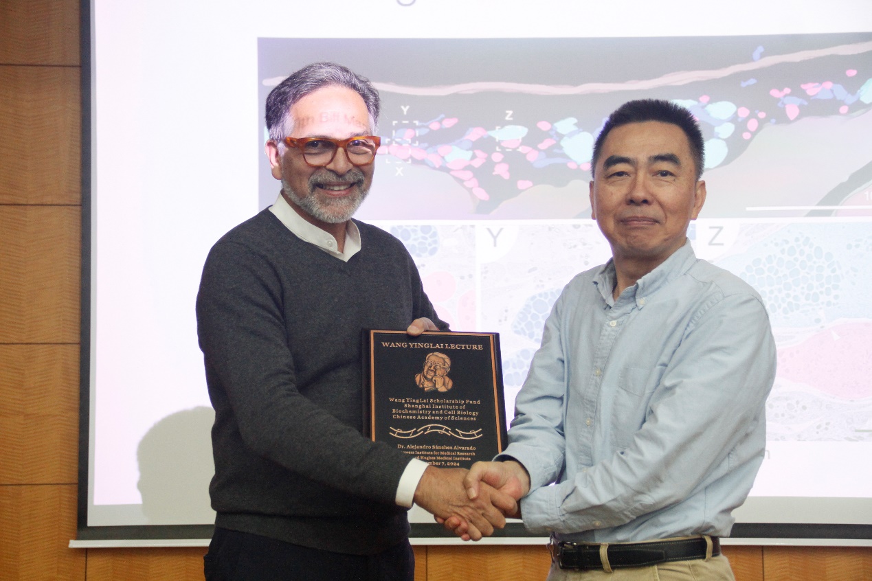 中心副主任周金秋研究員為Alejandro Sánchez Alvarado教授頒發(fā)王應(yīng)睞講座榮譽(yù)證書(shū)