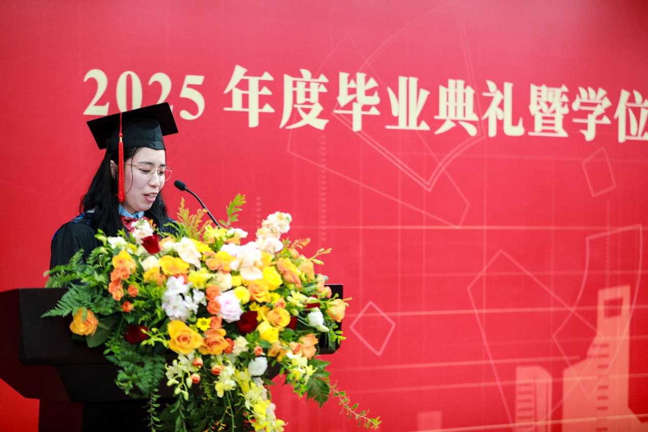 導(dǎo)師代表周波研究員在發(fā)言中向畢業(yè)生們表示衷心祝賀,并分享了寶貴的人生建議。他倡導(dǎo)“長期主義”理念,鼓勵大家減少短期焦慮,提高容錯率,選定方向后腳踏實(shí)地前行,在持之以恒的堅(jiān)持中收獲踏實(shí)穩(wěn)定的幸福。