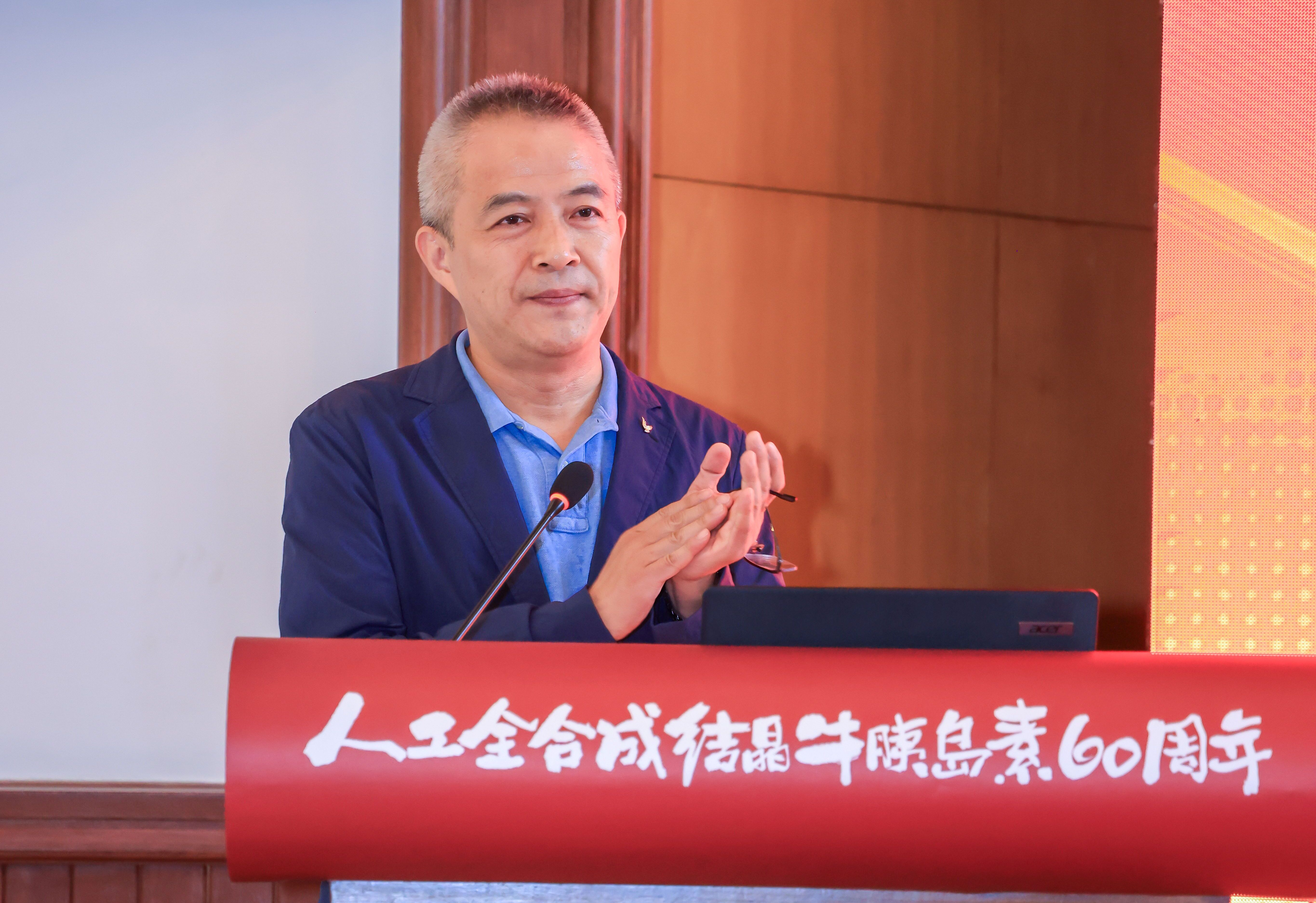 分子細胞卓越中心主任、黨委負責人劉小龍首先作題為《結(jié)晶映甲子、初心照未來——讓胰島素精神之光照亮新時代科技創(chuàng)新之路》的報告,重溫了六十年前老一輩科學家攜手攻堅完成人工全合成結(jié)晶牛胰島素的艱辛歷程,詳細介紹了中心近年來持續(xù)開展胰島素相關(guān)科學研究,在基礎(chǔ)研究、科技成果轉(zhuǎn)化、學科交流與合作等方面取得的一系列新進展。他表示,科技創(chuàng)新之路任重道遠,胰島素精神的火種六十年間在“320大院”薪火相傳,期待未來與兄弟單位有更多更緊密的合作,在原始創(chuàng)新與關(guān)鍵核心技術(shù)領(lǐng)域?qū)崿F(xiàn)更多“從0到1”的突破。