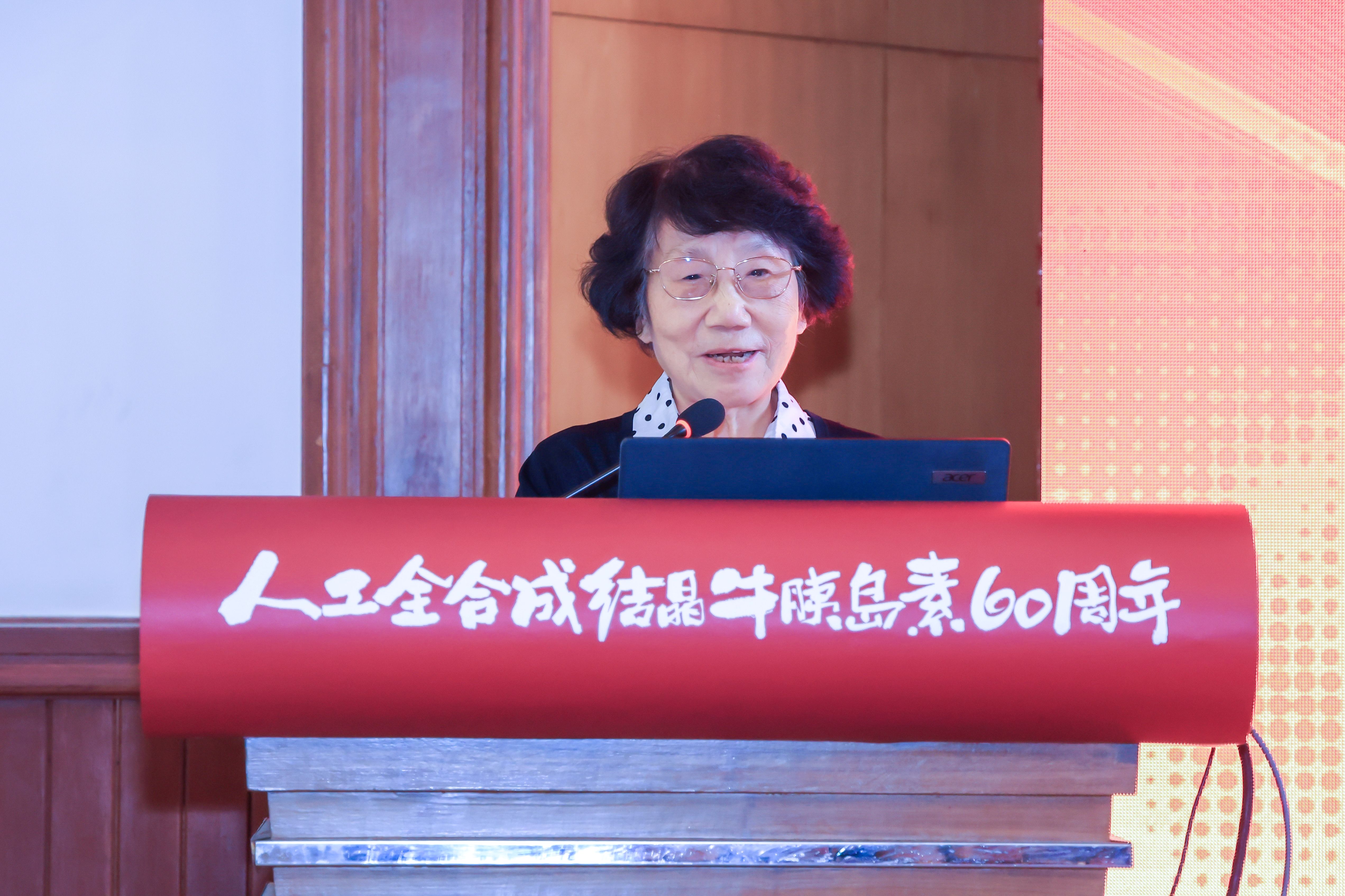 中國科學院院士、人工全合成結(jié)晶牛胰島素親歷者代表張永蓮發(fā)言。作為大兵團作戰(zhàn)時期胰島素B鏈后8肽合成組小組長,她生動回顧了當年生化所全所一盤棋的攻關(guān)場景,深入分析闡述了該項目的成功經(jīng)驗和歷史意義。她說,正是社會主義舉國體制的保障、跨學科大協(xié)作的優(yōu)勢和科研人員自力更生的奮斗精神,成就了人工全合成結(jié)晶牛胰島素這一中國科學史上的豐碑。面對當前國內(nèi)外形勢,更應(yīng)借鑒胰島素攻關(guān)經(jīng)驗,給予科研人員長期穩(wěn)定支持,鼓勵自由探索的同時,更要面向世界科技前沿和國家重大需求組織跨學科、跨單位的協(xié)同攻關(guān),為AI時代再現(xiàn)人工全合成結(jié)晶牛胰島素的輝煌成就,為世界生命科學發(fā)展作出新的中國貢獻。